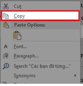 – Bước 3: Nhấn chuột phải và chọn Copy.