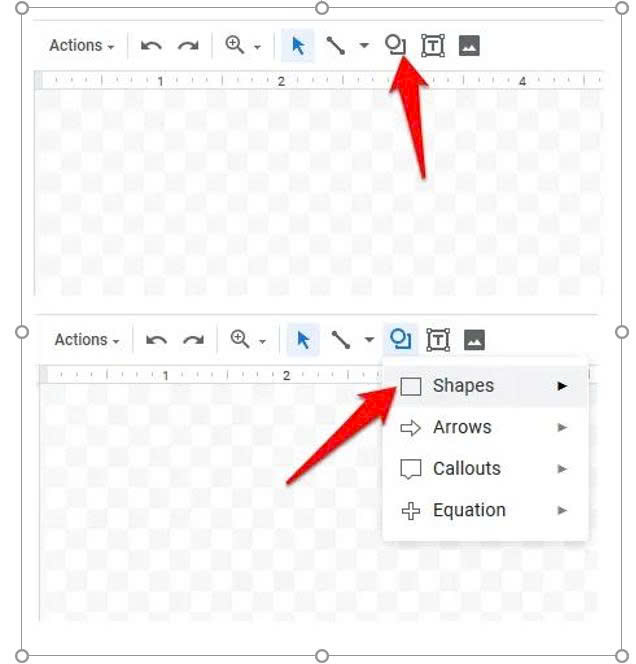 - Nhấp vào Insert > Drawing > New và chọn lệnh Shapes.